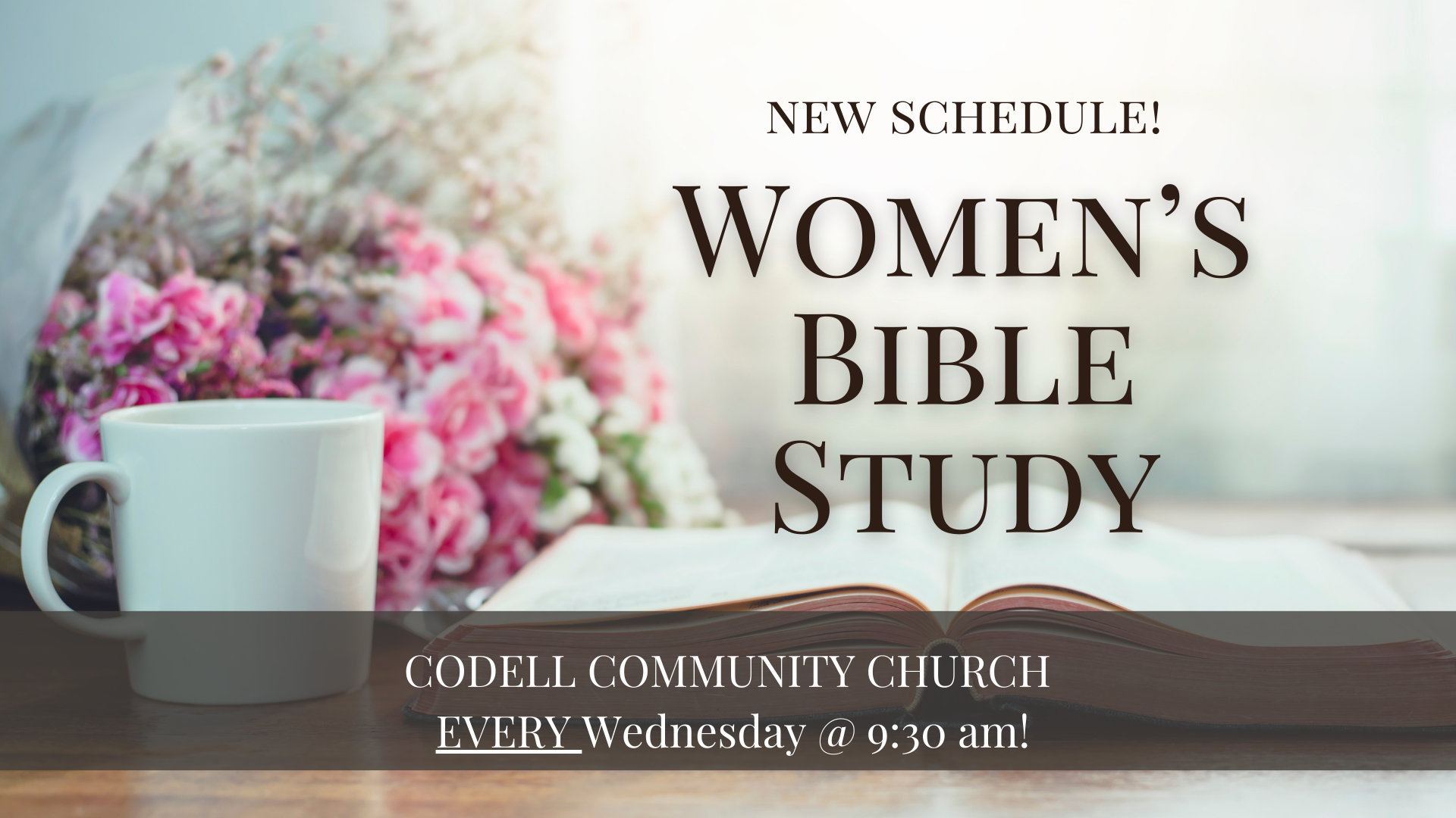 New schedule for the New Year: Women’s Bible Study EVERY Wednesday at 9:30am.
