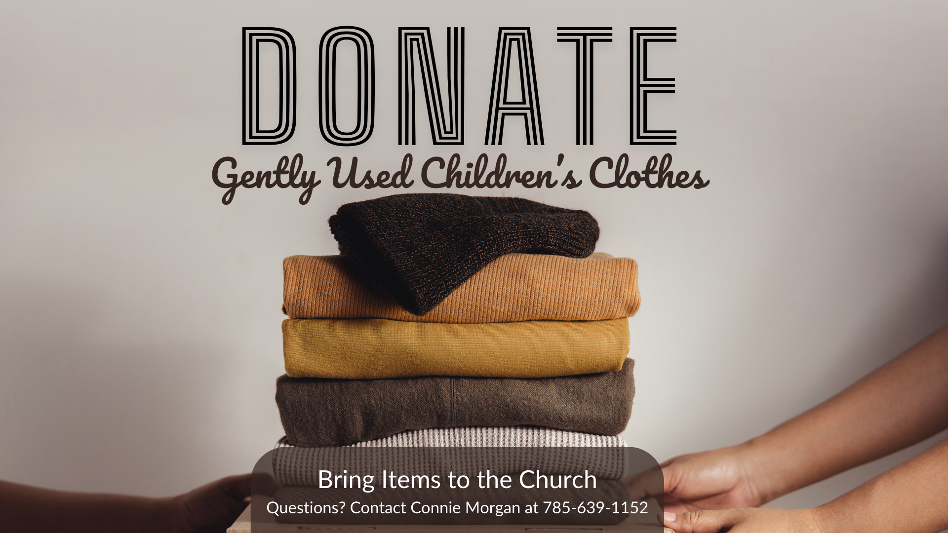 Connie Morgan is currently accepting donations of children’s gently used clothing to give away to families in AR when she moves there.